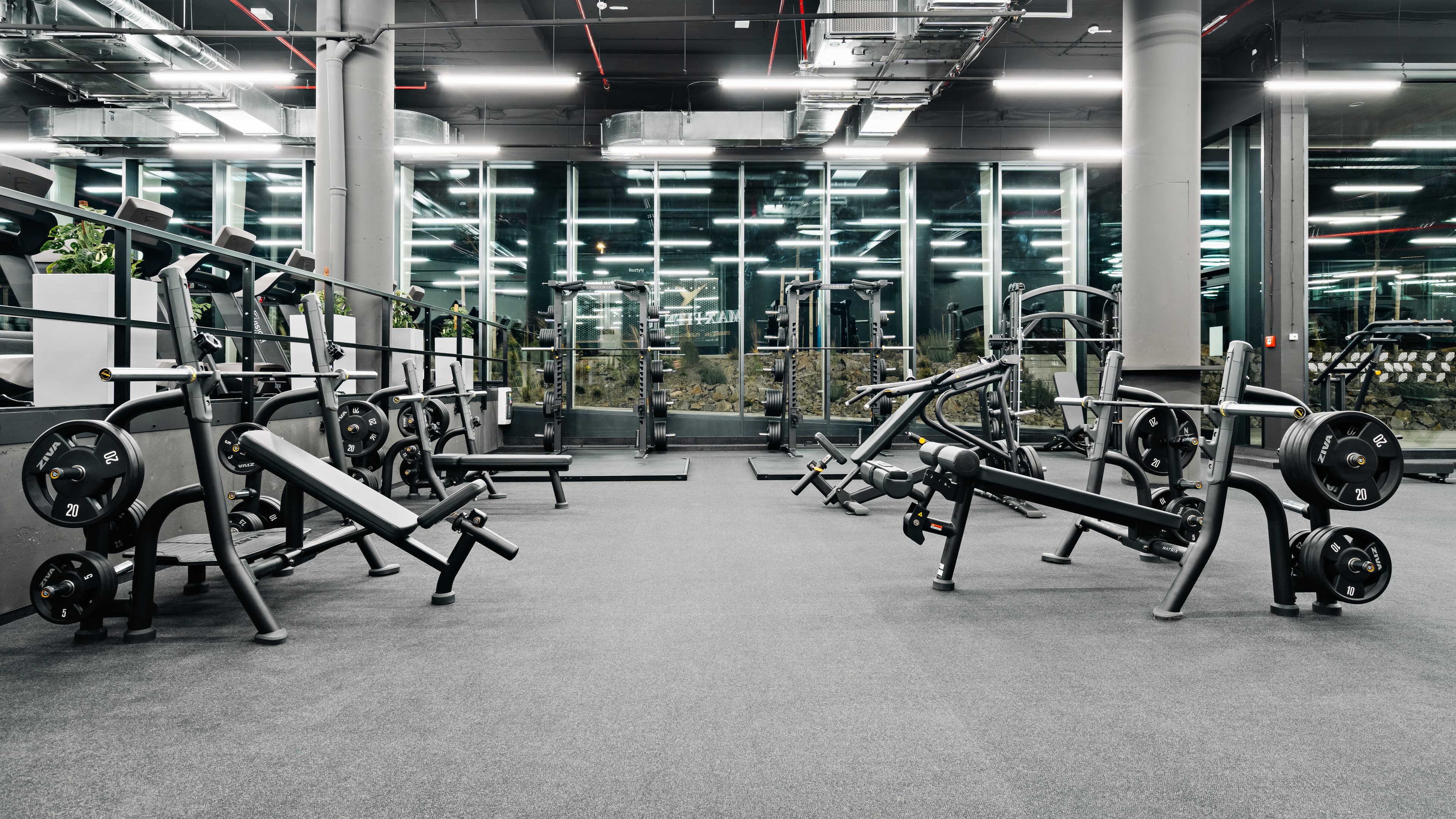 A spacious 1200 m² fitness center located just a few meters from the Roztyly metro station. It offers modern Matrix equipment, a Finnish sauna with a relaxation zone included free of charge with your gym visit, and a solarium.